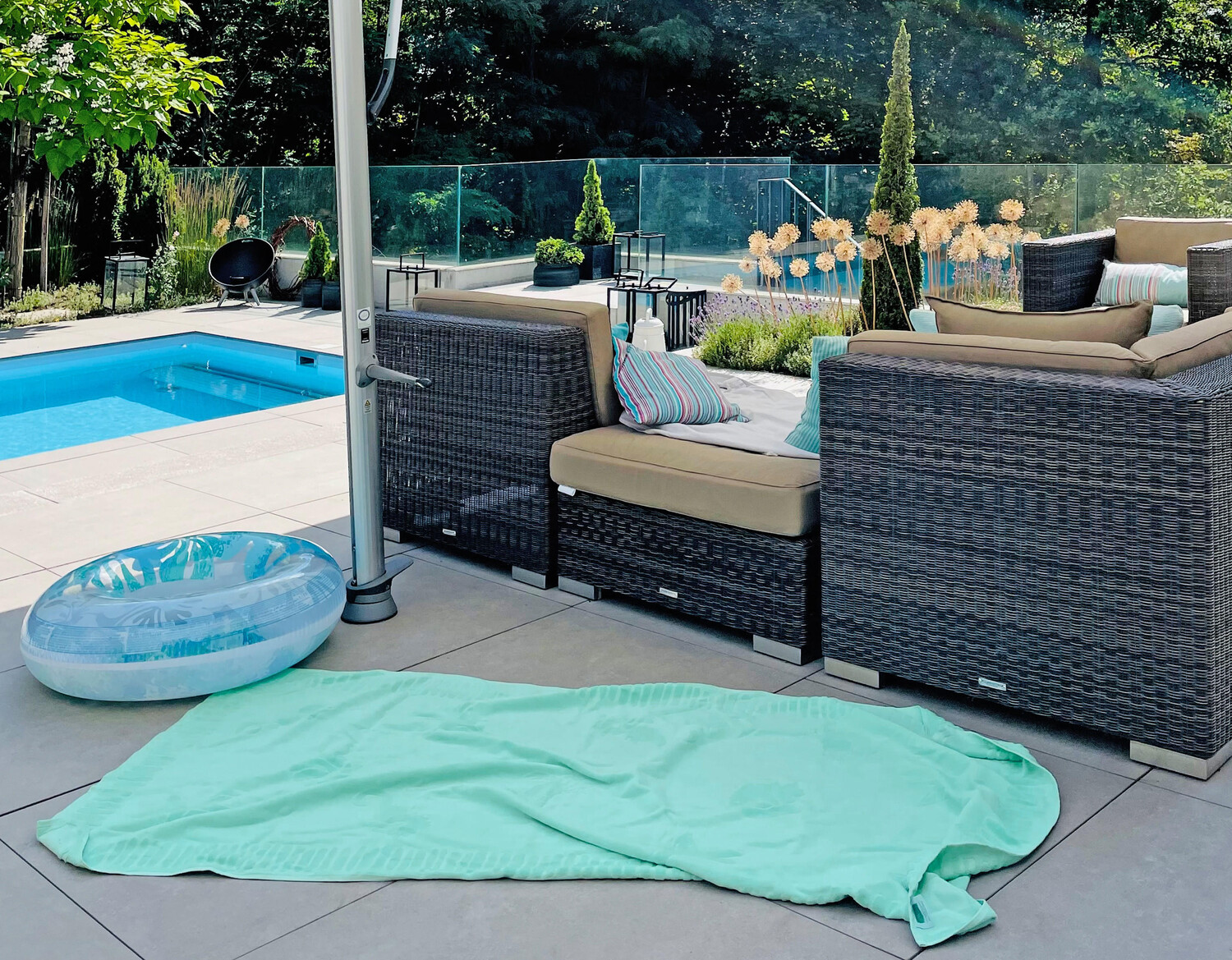 Отличный и легкий компаньон на пляже, в бассейне, на озере или в бассейне! Наслаждайтесь расслабляющими часами на море или в бассейне с этим очень большим полотенцем из 100% хлопка. Хлопок приятно мягок на ощупь и обладает отличными впитывающими свойствами. Пляжное полотенце весом 380 г легко транспортировать и не занимает много места в чемодане, рюкзаке или сумке. Банное полотенце размером 100x200 см сохраняет голову и ноги сухими и чистыми одновременно. Вы также можете положить пляжное полотенце на шезлонг или взять его с собой в сауну. Неизменный спутник на пляже, в открытом бассейне или на озере – это настоящая приманка для глаз с тонким вышитым рисунком морских животных. Выберите свой любимый цвет из множества ярких цветов. Благодаря реактивному окрашиванию красивые большие пляжные полотенца обладают высокой стабильностью цвета, предотвращают выцветание и позволяют пользоваться пляжными полотенцами в течение длительного времени. После солнечных ванн ткань можно постирать в машине при температуре до 60°C, а затем даже положить в сушилку. Благодаря плотному переплетению в пляжные полотенца практически не попадает песок. Банное полотенце быстро сохнет и подходит как внутри помещения (например, термальные ванны, сауны), так и на открытом воздухе (бассейны, озера, море).