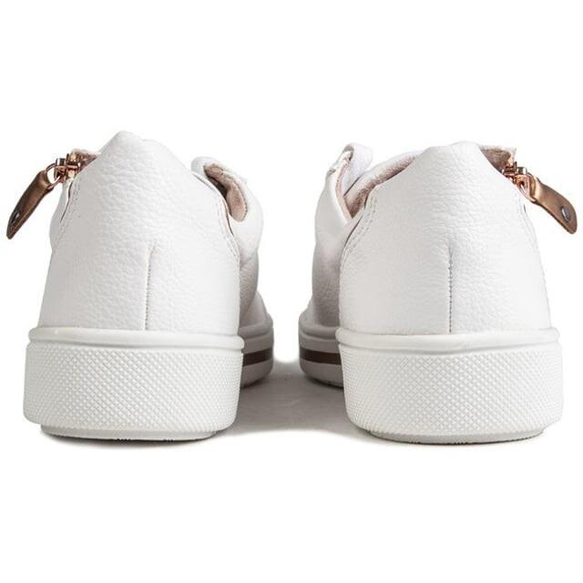 Обувь Jana – это праздник индивидуальности и свободы быть тем, кем ты хочешь быть. Эти белые женские кроссовки украшены элегантными деталями из розового золота, текстурированной подметкой в форме чашки и металлической застежкой-молнией. Идеально подходит для любого повседневного случая, ежедневных прогулок, поездок в город или прогулки в парке.
