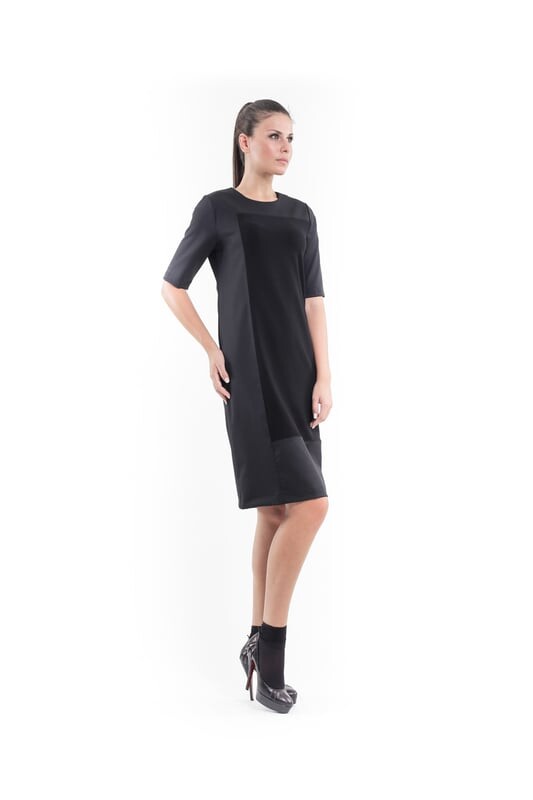 Платье-Футляр из контрастной ткани Conquista, черный