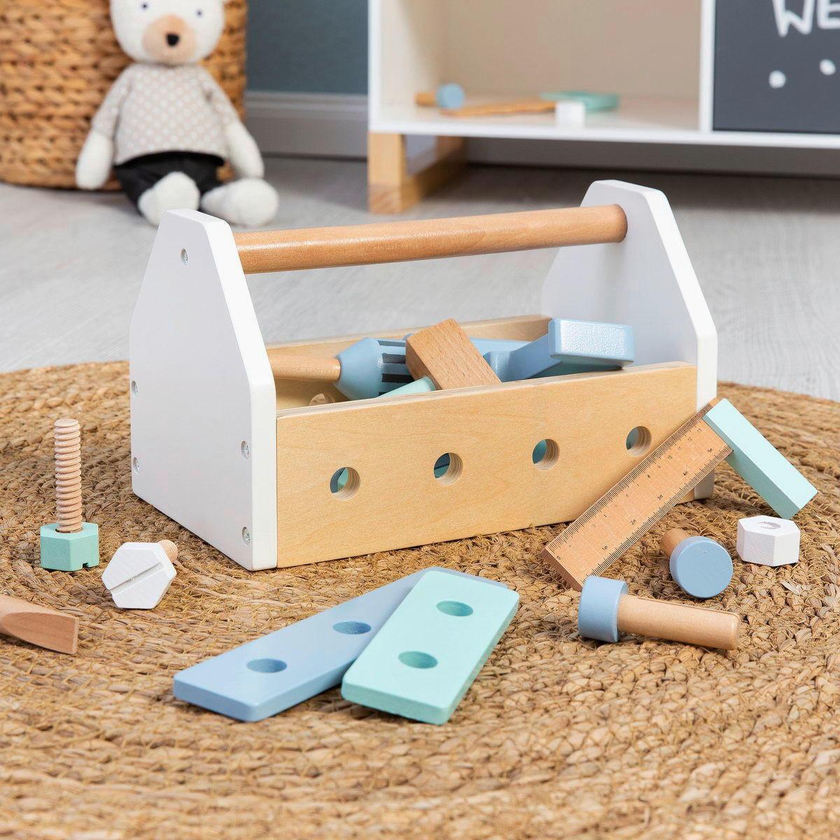 Помимо привлекательного скандинавского вида, детский верстак MUSTERKIND "Fagus" в теплых серых и натуральных тонах имеет все, что нужно детям от 3 лет и старше, любящим рукоделие. Здесь есть масса возможностей для творчества, не только на большой рабочей поверхности с отпечатком линейки. На верстаке и на задней стенке имеется множество отверстий для прикручивания. В комплект поставки также входят передвижные тиски, а также ящик для инструментов из 27 предметов с дрелью, молотком, пилой и многим другим. Оборудование можно хранить в большом отсеке для хранения вещей за дверцей для классной доски, в 2 открытых отделениях и в 2 ящиках. , которые также входят в комплект. Можно писать мелом - идеально подходит для поддержания порядка и постоянного обзора. Юные мастера могут в игровой форме освоить базовые навыки на детском верстаке MUSTERKIND "Fagus", который изготовлен из экологически чистого дерева и имеет совок и щетка для рук, которые висят сбоку на практичных крючках