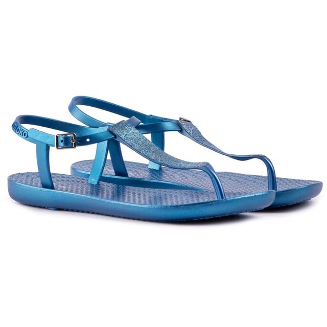 Придайте своей атмосфере летних солнечных каникул блестящий синий оттенок с помощью этих удивительных сандалий Salvia от Coloko. Легкие. Водонепроницаемые сандалии оснащены фирменным ремешком на щиколотке. Блестящий ремешок и изящная серебряная металлическая пряжка придают модели шикарный вид. летний вид.