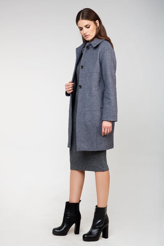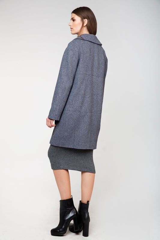 Пальто с длинными рукавами прямого силуэта мешочек. 2 боковых кармана. Подкладка из полиэстера. Длина: 101 см для 36 размера.