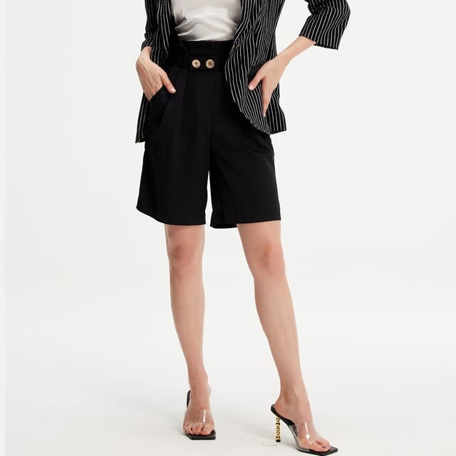 Шорты-Бермуды с завышенной талией и складками Smart And Joy, черный