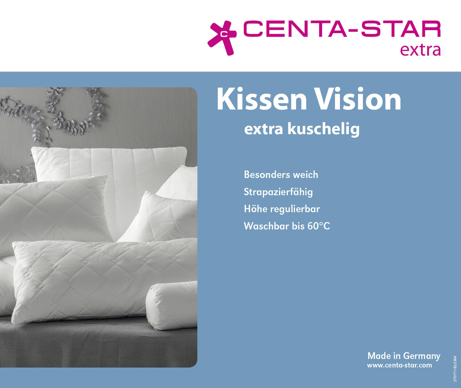 Для спокойной ночи необходима качественная подушка. Благодаря мягкому наполнителю мышцы шеи могут расслабиться во время сна, а тело зарядиться энергией. «Видение» от CENTA-STAR предлагает вам внутреннюю часть из дышащего полиэстера. Стеганый чехол из 100% хлопка скрепляет содержимое и впечатляет всеми преимуществами натурального волокна. Таким образом, вы получаете выгоду от здоровой среды для сна летом и зимой. Чехол приятен для кожи и хорошо регулирует влажность. Подушку размером примерно 80 х 80 см можно застелить любым стандартным постельным бельем. Кстати: CENTA-STAR дает вам фирменную гарантию 5 лет. Доверьтесь долговечности и высокому качеству вашей подушки и наслаждайтесь оптимальным сном с Vision.