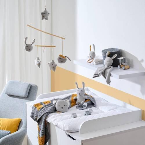 Детская музыкальная шкатулка "Кролик" серого цвета позволяет вашему малышу мягко расслабиться - дома на игровом коврике или на прогулке в коляске. Просто потяните за шнур, и аксессуар успокоит вашего малыша нежными звуками. Милый дизайн с изображением животных серебристо-серого цвета был разработан с большим вниманием к деталям. Трикотажная поверхность придает кролику структуру и идеально вписывается, например, в детскую комнату в уютном скандинавском стиле. Волокна органического хлопка приятно мягкие. Порадуйте свою вторую половинку детской музыкальной шкатулкой «Зайка» серого цвета! "