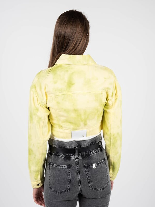 Простой крой Короткий крой С эффектом стирки С воротником Застежка на пуговицы Концы рукавов с манжетами Манжеты на пуговицах Два кармана спереди Нашивка с фирменной деталью сзади Изготовлено из высококачественного денима