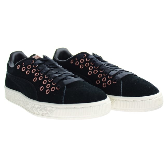 Черные женские кроссовки Puma Suede Xl Lace дополнены классическими кроссовками Puma Basket, дополнены эффектной металлической заклепкой и блестящим каблуком. Эта спортивная обувь, изготовленная из высококачественной замши и оснащенная мягкой стелькой, идеально подходит для повседневного ношения. Фирменная подошва и логотип Puma создают стильный спортивный вид.
