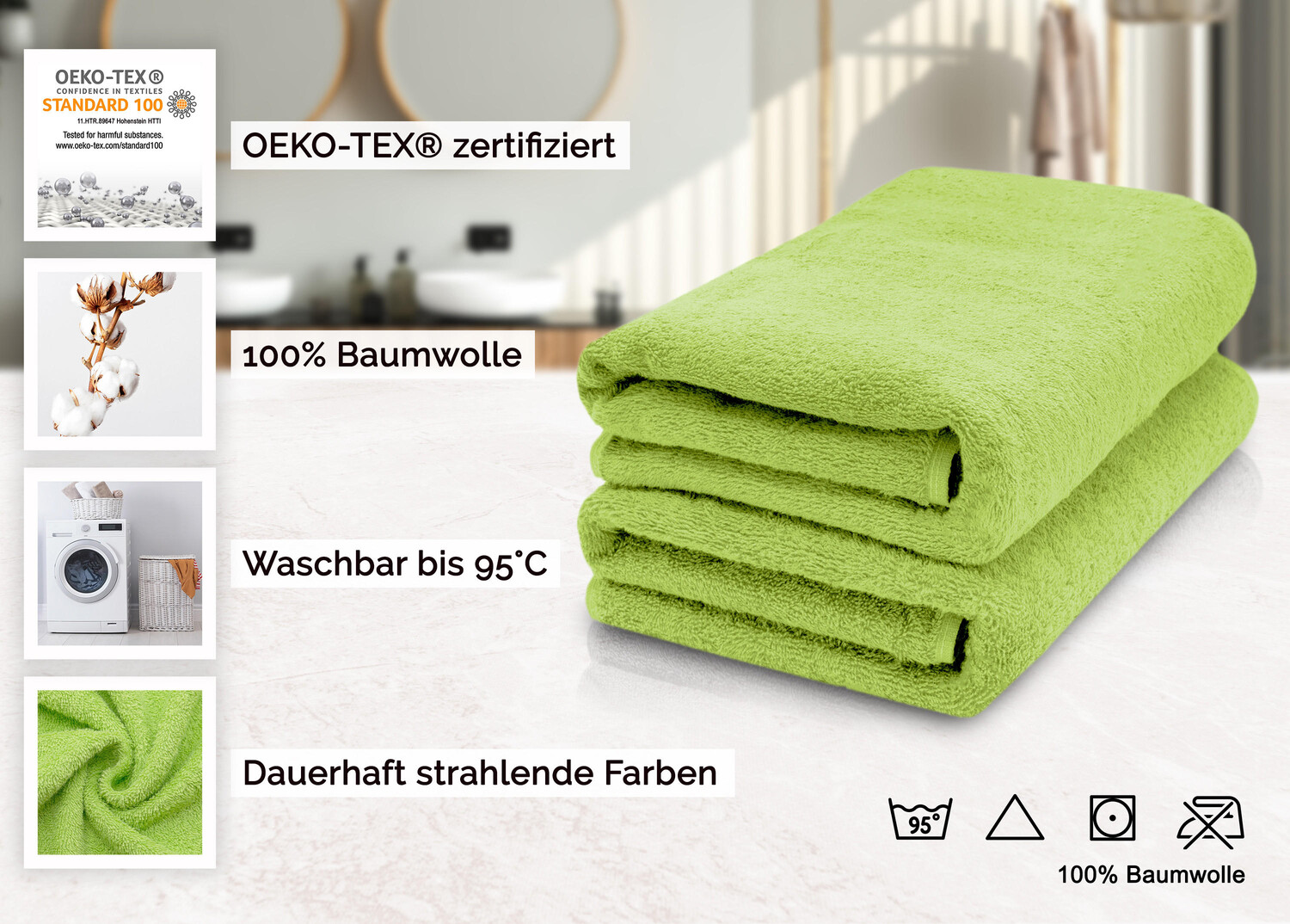 Приближается поездка в спа на следующие выходные, а вам все еще нужно красивое пушистое полотенце? Практичный набор из 2 штук зеленого цвета — идеальный выбор. Полотенца для сауны с вешалками изготовлены из 100% хлопка и переработаны в махровую ткань. Это делает их особенно мягкими и приятными на коже. Таким образом, вы сможете по-настоящему насладиться оздоровительным путешествием. Впитывающие махровые полотенца размером 70 x 200 см имеют плотность материала около 420 г/м² и имеют двойные защитные швы на продольных швах. Полотенца устойчивы к кипячению, их можно стирать и сушить в стиральной машине. Благодаря стабильному цвету индантренового красителя красивый цвет полотенец для сауны не вымывается.
