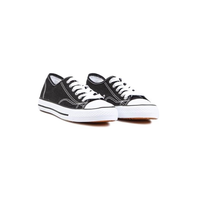 Женские кроссовки Leanne на шнуровке от Falcon Display Винтажный шик старой школы в новом дизайне. Этот культовый дизайн с черным парусиновым верхом, белой вулканизированной подошвой, легендарным резиновым носком и серебристыми металлическими люверсами представляет собой классический элемент, без которого не может обойтись ни один повседневный гардероб.