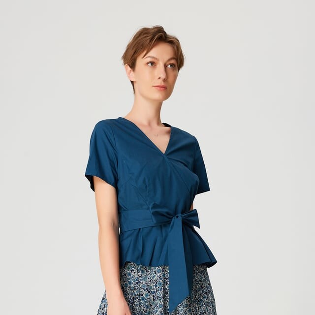 Топ с баской и широким поясом-бантом Smart And Joy, синий