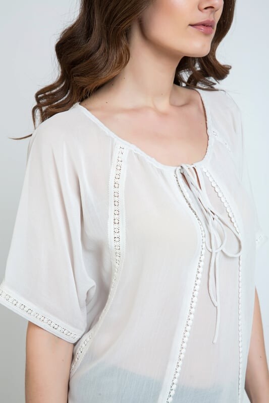 Этот воздушный, легкий, потрясающе красивый топ в стиле бохо добавит нотку сказочной романтики в ваш гардероб в этом сезоне. Панели и детали, связанные крючком, на изысканной прозрачной ткани создают чарующую ауру. Вырез на кулиске заканчивается милой каплевидной деталью. Крыло летучей мыши, полурукава. Округленный вырез горловины с кулиской.