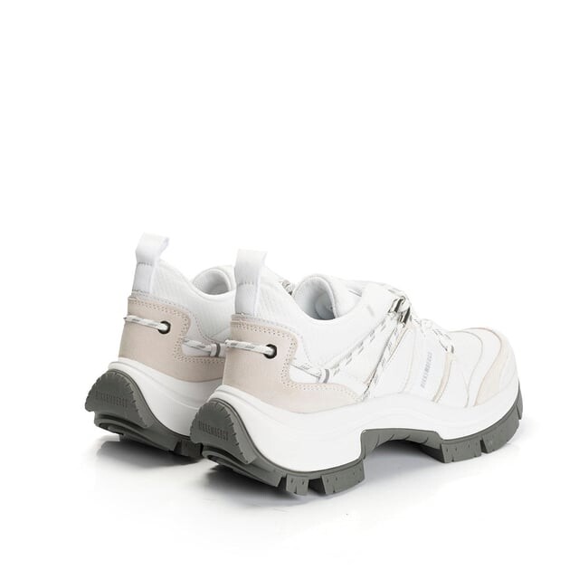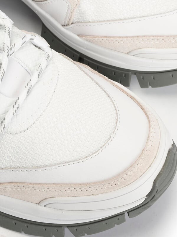 Завязанные шнурки Низко, выше щиколотки. На толстой подошве. Выполнен в стиле горных ботинок. Украшен шнурками контрастного цвета. Напечатан логотип бренда. На язычке собственный значок компании. Изготовлен из высококачественной натуральной кожи и текстильных материалов. С текстильной вставкой и подкладкой. Упаковано в фирменную коробку.