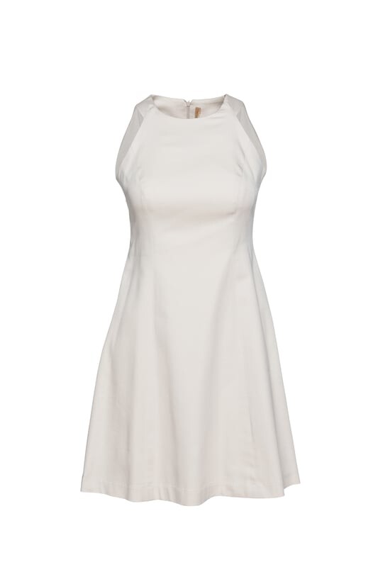Песочное платье без рукавов из эластичного габардина. Гонщик назад. Швы от проймы на груди до подола для идеальной посадки. Потайная молния на спине. А-силуэт. Полностью на подкладке из ткани цвета экрю. Длина для размера 38: 95 см. Рост нашей модели 176 см, размер 36/S. Замеры на 38 размер (в см): плечо -23; грудь-38; Талия-35; ягодицы-53; Длина тела-95. 97%Хлопок-3%Эластан