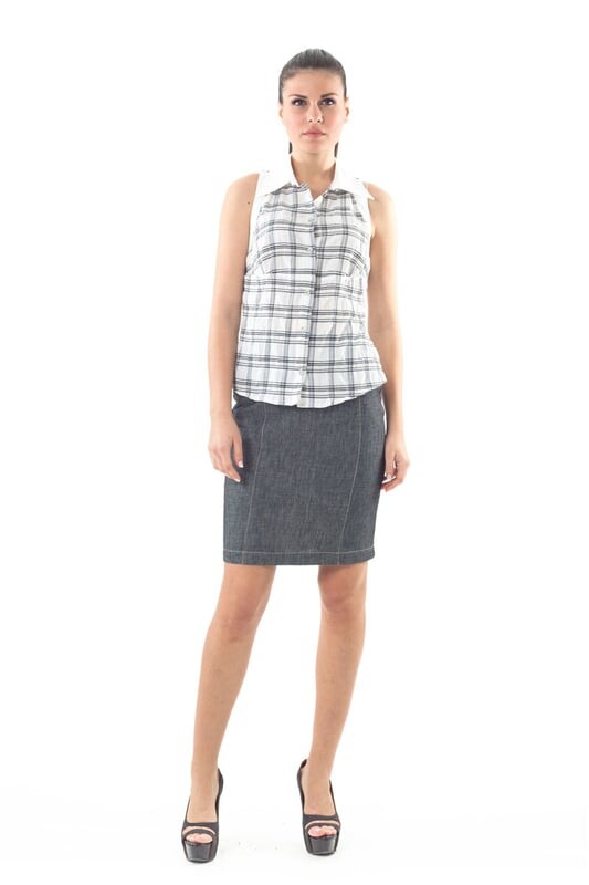 Сохраняйте непринужденность и обратите внимание на эту клетчатую рубашку от Conquista. Эта вещь в стиле кантри, выполненная из легкой ткани, украсит ваш гардероб в этом сезоне. Простой воротник обеспечивает контраст. Застежка на пуговицы спереди. Без рукавов. На изображенной модели рост 178 см, размер 36/S. Блузка CONQUISTA из бело-черной клетчатой ткани, простой белый воротник и окантовка в пройме, неровный низ, планка на пуговицах спереди, спинка-борцовка, без рукавов, с эластичной талией.
