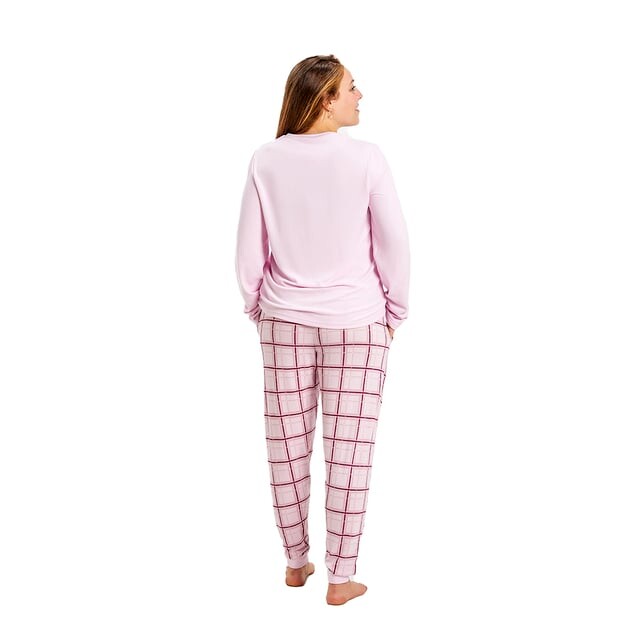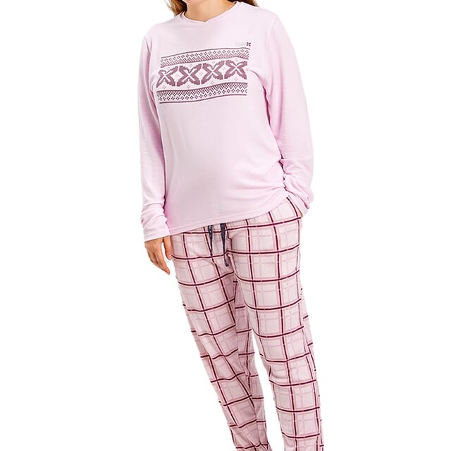 Пижама с длинными рукавами Мюнхен. Цвет: нежно-розовый. Футболка с длинными рукавами и круглым вырезом. Напечатан клетчатый узор. Дизайн с фирменной графикой. Длинные брюки. С эластичным поясом. Низ прямого кроя. Видим швы одного цвета. Состав: 96% полиэстер, 4% эластан. -Стирать при максимальной температуре. 30°. -Не используйте отбеливатель. -Гладить при максимальной температуре. 110°. - Не переносит химчистку. -Позволяет использовать сушильную машину.