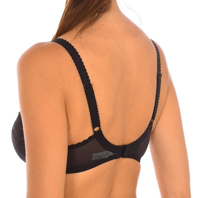 Бюстгальтер Playtex на косточках. Цвет Черный. Вышивка кружевом для женственного и утонченного стиля. Чашки с пеной. Эластичные и регулируемые бретели. Застежка сзади на четырехпозиционных ремнях. Эластичные бока. Швы в тон. Состав: 78% полиамид, 22% эластан. Ручная стирка. - Не используйте отбеливатель. - Не кладите в сушилку. - Не гладить. - Не подвергать химической чистке.
