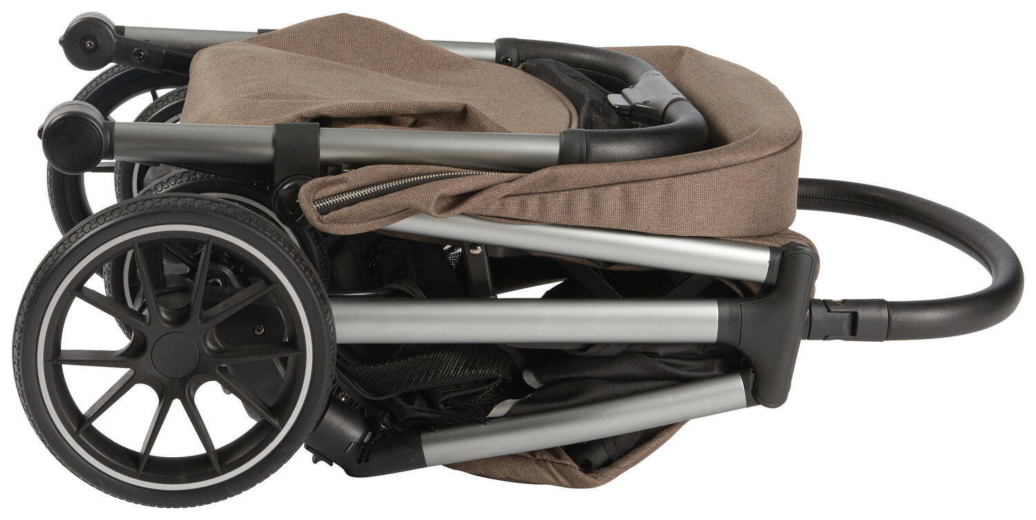 С этой коляской JIMMYLEE коричневого цвета с рамой из анодированного алюминия малыши всегда будут стильно путешествовать - будь то покупки в городе или прогулка по парку. Устойчивые колеса из ЭВА диаметром около 7 дюймов (спереди) и около 9,5 дюймов (сзади) обеспечивают хороший ход. Для целенаправленного маневрирования передние колеса можно поворачивать или блокировать по желанию. Во время короткого перерыва тормоз позволяет вам надежно стоять. Поручения и т. д. можно легко убрать в корзину для покупок. Чтобы вашему воробышку было комфортно во время вождения, подножку можно регулировать, а спинку можно плавно наклонять назад. В солнцезащитный козырек встроено сетчатое окошко, через которое вы можете следить за своим любимцем - так оно и есть. также комфортен в теплые дни, способствует приятной циркуляции воздуха. Пятиточечный ремень безопасности и съемная защитная перекладина обеспечивают надежную поддержку, например, если детскую коляску нужно перевозить в багажнике, ее можно компактно сложить. Крючок позволяет надежно закрепить его в сложенном состоянии. Кроме того, автомобиль затем можно тянуть как тележку. Этот коричневый багги с алюминиевой рамой готов к повседневной семейной жизни!