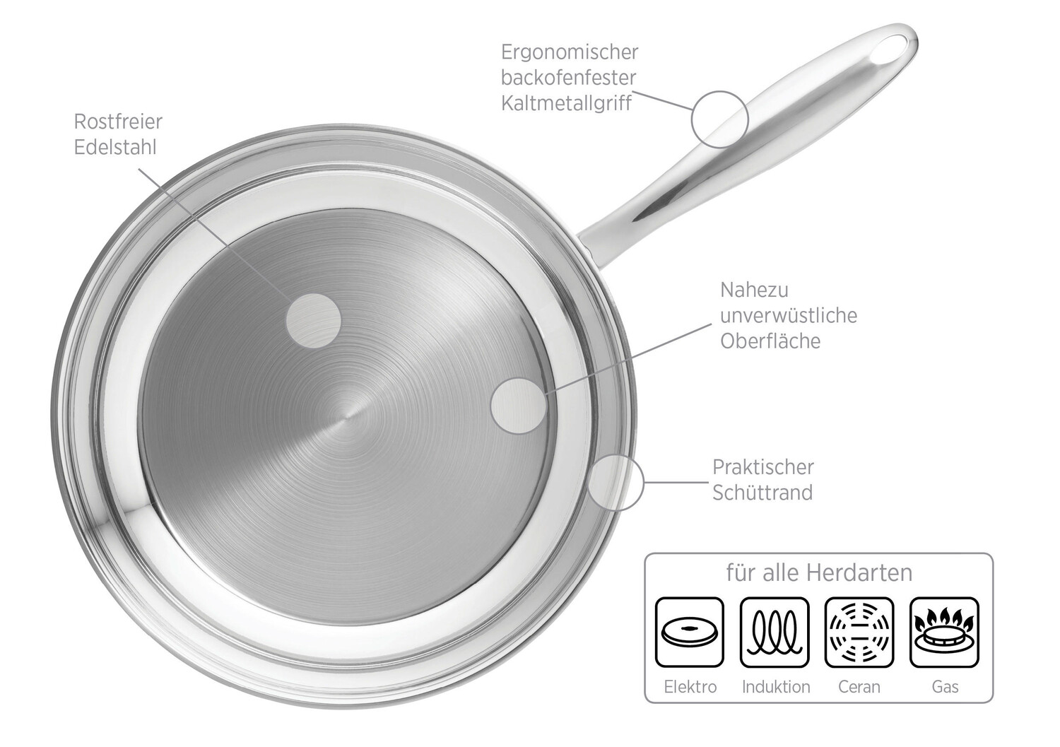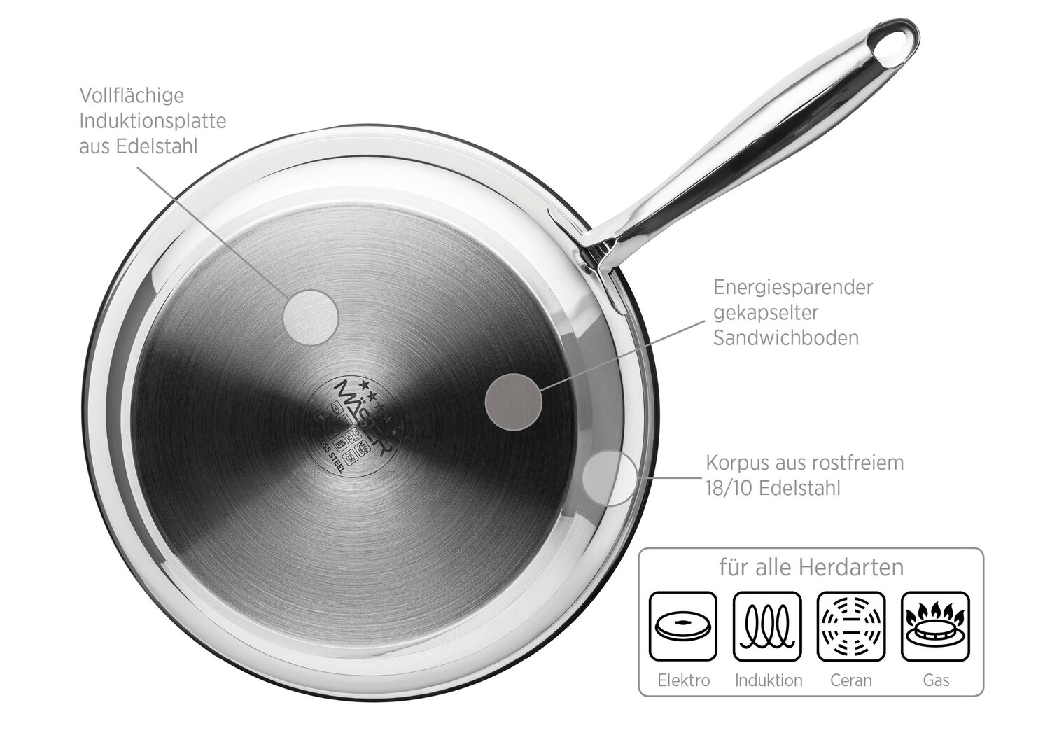 Сковорода MÄSER «Тавос» идеальна для приготовления пряных жареных деликатесов. Изготовленный из металла серебристого цвета, он впечатляет первоклассным качеством от известного бренда. Аксессуар диаметром около 28 см можно использовать на всех типах плит, а также он удобен в использовании благодаря эргономичной ручке. Благодаря герметизированному сэндвич-дну эта круглая сковорода впечатляет своей экономичностью. Кроме того, высококачественная нержавеющая сталь 18/10 обладает термостойкостью примерно до 240° C, поэтому ее можно помещать в духовку. Шипение, фламбирование, карамелизация и жарка во фритюре – все это прекрасно сочетается со сковородой MÄSER «Tavos»!