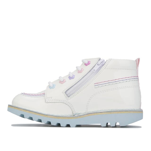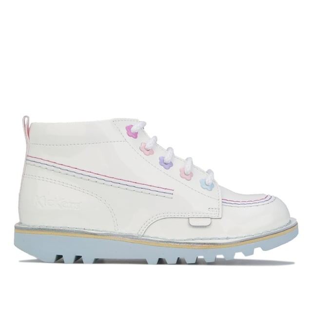 Boots Kickers Kick Hi Fleur Patent pour garçon en blanc.