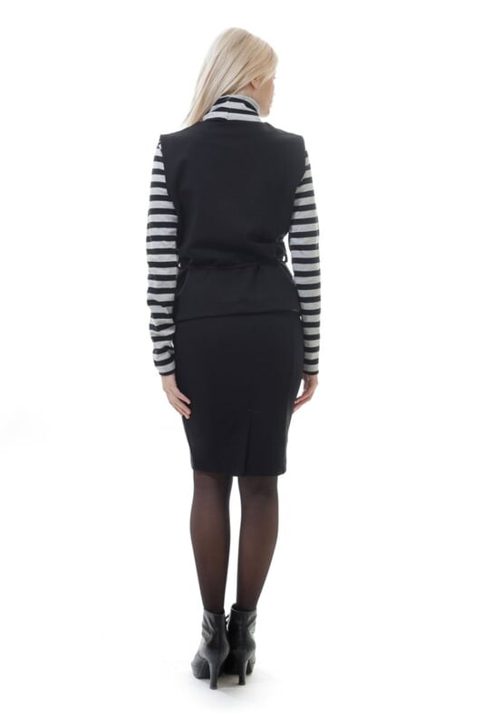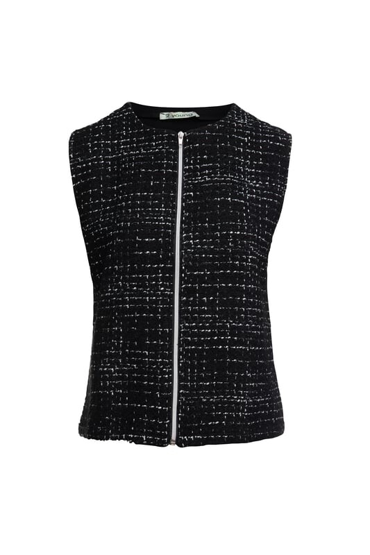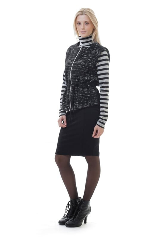 Поднимите стиль с помощью этого ультра-шикарного жилета от 2-Young. Передняя часть из контрастной ткани имеет приятную структуру из теплого двухцветного трикотажа, а эластичная спинка гарантирует идеальную посадку. Завязка на талии создает женственный образ. На фотографии рост модели 170 см, размер 36/S.