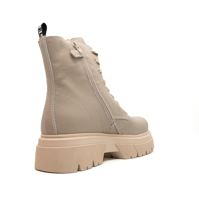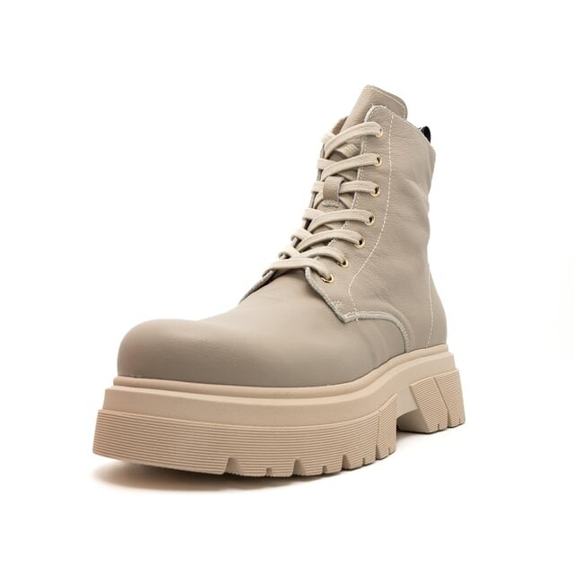 Цвет: Бежевый 412 Материал верха: Кожа. Внутренняя часть: Кожа. Подошва: Резина. Застежка: Молния и шнурки. Детали: Круглый нос. Посадка: Регулярная. Случай: Для отдыха.
