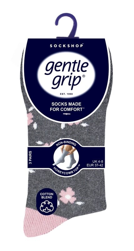 Мягкие носки Gentle Grip от Sockshop имеют специально разработанный верх HoneyComb, который повышает комфорт для всех, но особенно для людей, страдающих плохим кровообращением или опухшими ногами, лодыжками и ступнями. Все носки SockShop Gentle Grip созданы для ухода за вашими ногами и комфортно повторяют их естественные контуры, не оставляя некрасивых, раздражающих и зудящих сужений. Это действительно носки будущего для тех, кому не нравятся узкие топы. Мягкие, нескользящие топы, которые не спадают при ношении, а также идеально подходят для диабетиков!