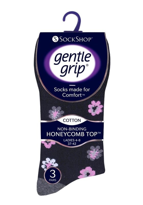 Мягкие носки Gentle Grip от Sockshop имеют специально разработанный верх HoneyComb, который повышает комфорт для всех, но особенно для людей, страдающих плохим кровообращением или опухшими ногами, лодыжками и ступнями. Все носки SockShop Gentle Grip созданы для ухода за вашими ногами и комфортно повторяют их естественные контуры, не оставляя некрасивых, раздражающих и зудящих сужений. Это действительно носки будущего для тех, кому не нравятся узкие топы. Мягкие, нескользящие топы, которые не спадают при ношении, а также идеально подходят для диабетиков!