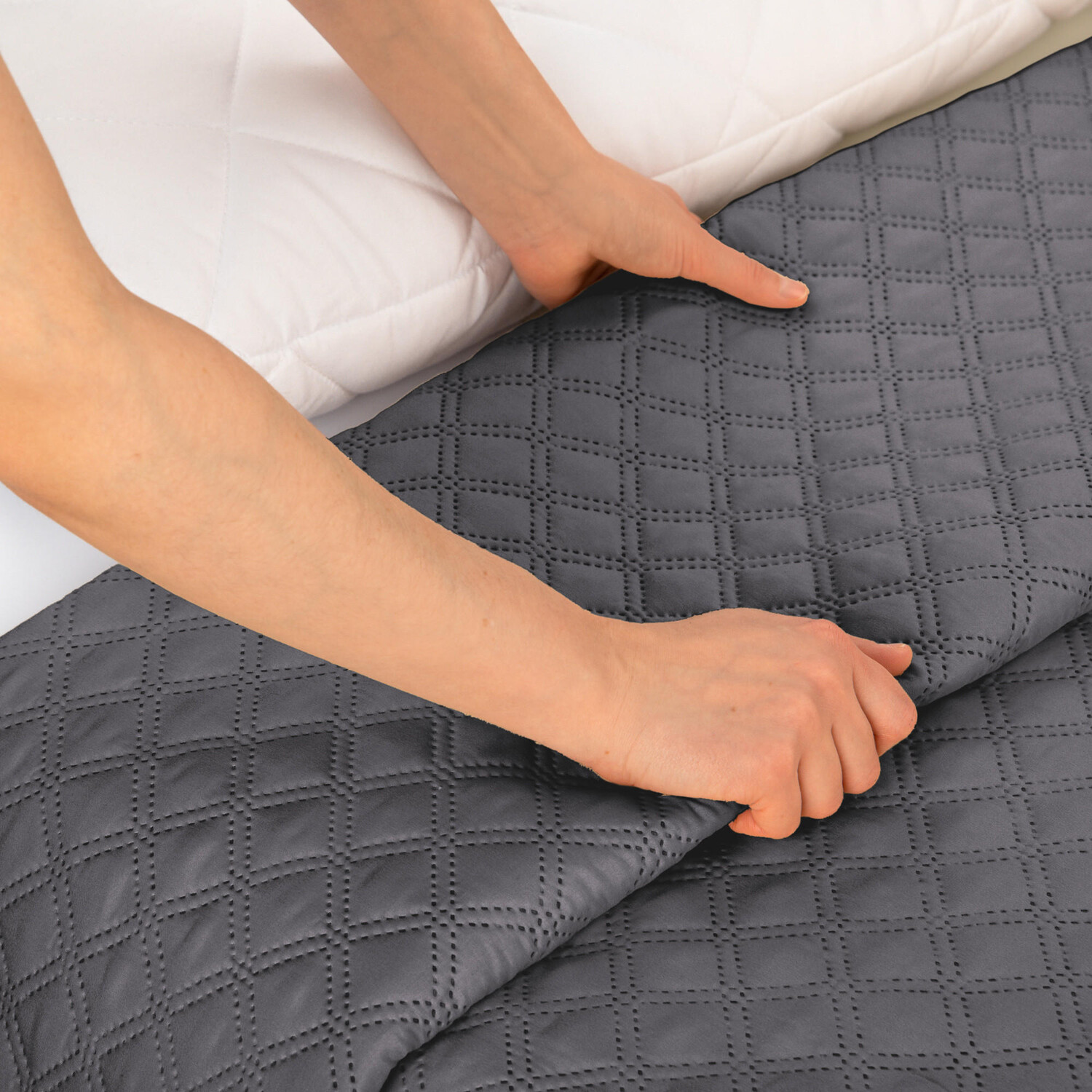 Современное покрывало для быстрой организации работы и создания уютной атмосферы в вашем доме. С нашим стеганым покрывалом Olivia вы сможете быстро и легко придать своей комнате новый вид. Дышащее покрывало можно использовать для кровати или дивана. Благодаря вневременному тисненому узору покрывало идеально вписывается в любую жилую среду. Нейтральные, современные цвета. Мягкие, нежные цвета можно сочетать с летним и зимним постельным бельем и излучать покой и уют в ваших комнатах. Вы можете выбрать покрывало кремового, светло-серого и антрацитового цвета. Дышащий материал. Твердая ткань одеяла в стеганом виде изготовлена ​​из микрофибры и пропускает воздух. В отличие от более легких одеял, под одеялом не остается складок, что создает гармоничную общую картину. Рельефная стежка одеяла пропускает достаточно воздуха в течение дня, чтобы обеспечить адекватную вентиляцию вашей кровати или дивана. Сделайте заказ в кратчайшие сроки. Благодаря этому современному покрывалу вашу кровать можно быстро застелить утром и разложить вечером. . Таким образом, вы сможете быстро и легко организовать вещи и создать стильную жилую атмосферу.