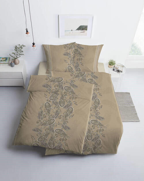 Постельное белье ESTELLA из трикотажа (ок. 135 х 200 см) — мечта бежевого цвета. Бренд ESTELLA фокусируется на высококачественных творениях для создания эстетичной атмосферы для отдыха. Домашнюю атмосферу в зоне отдыха дома поддерживает гарнитур из серии «ATELIER» в стильной цветовой гамме. Мотив пейсли привнесет что-то определенное в ваш оазис спокойствия. Комплект из двух предметов определенно производит впечатление единообразия: пододеяльник и наволочка оптимально сочетаются друг с другом. Компоненты и размеры с первого взгляда: 1 пододеяльник (Ш x Д: примерно 135 x 200 см) 1 наволочка ( Ш x Д: примерно 80 x 80 см) Мягкая поверхность из трикотажа интерлок балует вас своей приятной для кожи текстурой летом и зимой. Трикотажные изделия также обладают небольшой эластичностью и термобалансирующими свойствами. Молния экономит много времени при надевании одежды. Волокна также заслуживают внимания за простоту ухода: их легко стирать в машине при температуре примерно до 60°C. Затем их можно положить в сушилку. Постельное белье ESTELLA из трикотажа (около 135 х 200 см) бежевого цвета превращает постельный отдых в удовольствие.