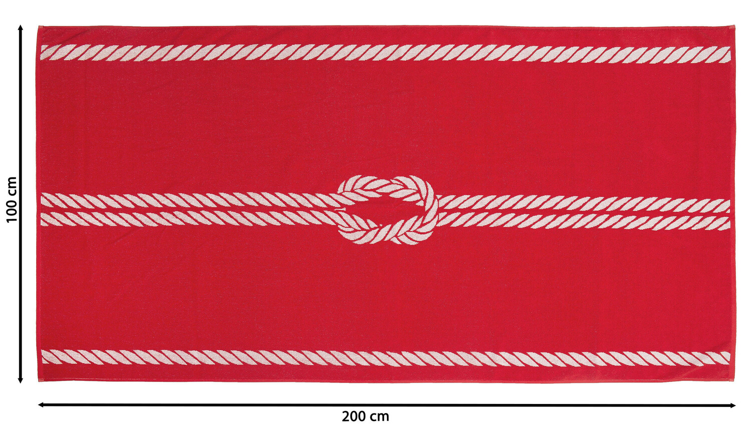 Незаменимая вещь для успешного пляжного путешествия! Благодаря удобному размеру 100x200 см, очень большая банная простыня XXL из 100% хлопка идеально подходит в качестве основания на пляже, в качестве подстилки для шезлонга или для того, чтобы укутаться в нее себе или своим детям после купания. Великолепный дизайн веревки и узла, а также разные цвета с обеих сторон делают эту банную простыню привлекательной. Благодаря весу материала 450 г/м² пляжное полотенце очень впитывает влагу и при этом быстро сохнет. Банное полотенце можно стирать при температуре 60°C, а затем сушить в стиральной машине при низкой температуре.