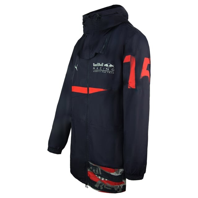 Темно-синяя мужская длинная куртка Puma Red Bull Racing RCT с длинным рукавом на молнии.