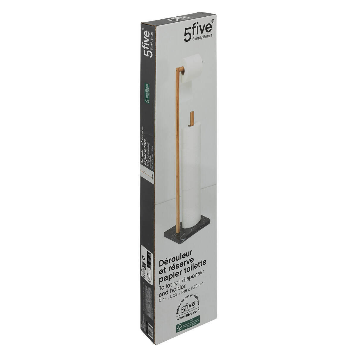 Подставка для туалетной бумаги LEA – стильный помощник для вашей ванной комнаты. Стильный дизайн: подставка для туалетной бумаги LEA впечатляет элегантным мраморным внешним видом и бамбуковой рамой, которая придает вашей ванной комнате нотку роскоши. Практичность и экономия места: подставка размером 22 x 18 x 78 см занимает мало места, но при этом на ней достаточно места для рулонов туалетной бумаги. Высококачественный материал: подставка изготовлена ​​из полирезина и бамбука, долговечна и легко чистится, что делает ее практичным и стильным аксессуаром для вашей ванной комнаты. Легко собрать: изделие поставляется в частично собранном виде, его можно быстро и легко собрать, поэтому вы сразу же сможете воспользоваться его функциональностью.