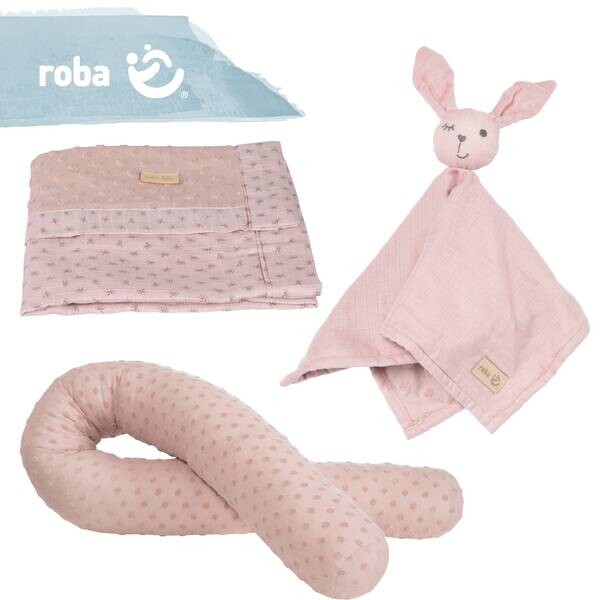 Органический подарочный набор roba «Lil Planet» изготовлен из экологически чистых, не загрязняющих окружающую среду, водопоглощающих и очень мягких трикотажных и муслиновых тканей из натурального хлопка. Подарочный набор состоит из постельного змейки из уютного трикотажа, детского одеяла из качественного муслина и двухслойного пледа с милой мордашкой зайчика из качественного муслина и уютного трикотажа в махровый горошек. При производстве органических детских товаров используются самые чистые, экологически чистые и необработанные материалы. Даже после многочисленных стирок органические детские товары сохраняют свою форму и мягкость на ощупь. Благодаря специальной обработке поверхности и предварительной стирке изделия остаются очень мягкими. Серия органического текстиля roba «Lil Planet» доступна в модных цветах: розовом/лиловом, голубом/небесном и серебристо-сером. Эта текстильная серия производится экологически устойчиво в соответствии с Глобальным стандартом органического текстиля GOTS и на справедливых и социальных условиях Инициативы по социальному соответствию бизнеса (BSCI). Серия сертифицирована по самым строгим экологическим критериям в соответствии со стандартом OEKO TEX Standard 100. Кровать змейка: Материал: Терри Дотс 80% хлопок ГОТС, 20% полиэстер, наполнитель: синтепон 100% полиэстер. Длина 170 см, диаметр 12 см. Цвет: розовый/лиловый. Детское одеяло: Верх: Terry Dots, 80 % органический хлопок GOTS, 20 % полиэстер, низ: Муслин, 100 % органический хлопок. Цвет: розовый/лиловый. Комфортное одеяло: передняя часть: 100 % натуральный хлопок, задняя часть: 80 % хлопок GOTS, 20 % полиэстер. Размеры: 40х40 см. Цвет: розовый/лиловый. Все изделия можно стирать при экологически чистой температуре 40°С.