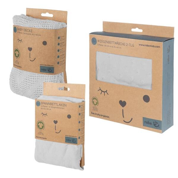 Габариты: Ширина: 80 см. Высота: 1 см. Глубина: 80 см. Ширина пододеяльника: 80 см. Длина пододеяльника: 80 см. Ширина наволочки: 40 см. Длина наволочки: 35 см. Органический подарочный набор roba «Lil Planet» изготовлен из экологически чистых, не загрязняющих окружающую среду, водопоглощающих и очень мягких трикотажных и муслиновых тканей из натурального хлопка. Подарочный набор состоит из постельного белья для люльки из уютного трикотажа в махровый горошек, простыни для матрасов для люльки из качественного хлопкового трикотажа и детского пледа трикотажного вида из 100% натурального хлопка. При производстве органических детских товаров используются самые чистые, экологически чистые и необработанные материалы. Даже после многочисленных стирок органические детские товары сохраняют свою форму и мягкость на ощупь. Благодаря специальной обработке поверхности и предварительной стирке изделия остаются очень мягкими. Серия органического текстиля roba «Lil Planet» доступна в модных цветах: розовом/лиловом, голубом/небесном и серебристо-сером. Эта текстильная серия производится экологически устойчиво в соответствии с Глобальным стандартом органического текстиля GOTS и на справедливых и социальных условиях Инициативы по социальному соответствию бизнеса (BSCI). Серия сертифицирована по самым строгим экологическим критериям в соответствии со стандартом OEKO TEX Standard 100. Постельное белье для кроватки: наволочка 35х40 см и пододеяльник 80х80 см, сертифицированный GOTS трикотаж в махровый горошек, 80 % органический хлопок, 20 % полиэстер. Цвет: серебристо-серый, простыня для матрасов-люльки: трикотаж из 100% органического хлопка, подходит для детских матрасов размером 45x90 см и 40x90 см. Цвет: серебристо-серый, вязаный детский плед: 100% натуральный хлопок, размеры: 80х80 см. Цвет: серебристо-серый, все вещи можно стирать при экологически чистой температуре 40°С.