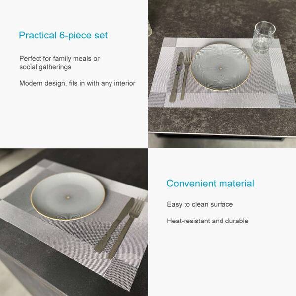 Украсьте свой обеденный стол нашим практичным набором салфеток. 6 настольных ковриков из ПВХ. Эти высококачественные салфетки не только обеспечивают оптимальную защиту от грязи, но и придают вашему столу стильный вид.