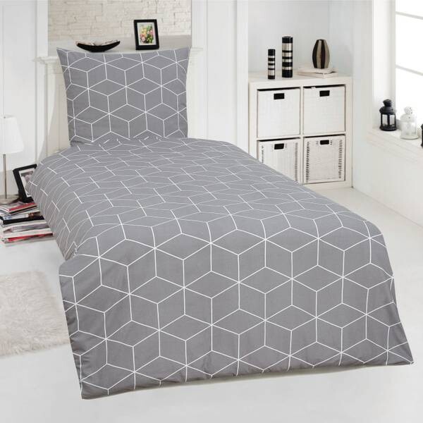 Бренд: One-Home Цвет: серый Материал: Текстиль Узор: Графический Сборка не требуется Постельное белье: Постельное белье: Renforcé Тип застежки: на молнии Чехол: Состав ткани чехла: 100% хлопок Комплект поставки: 1 пододеяльник 135 х 200 см и 1 наволочка 80 х 80 см - 2 шт. Стирка: машинная стирка 60°C Сушка: подходит для сушки в барабане