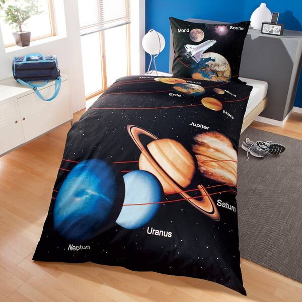 Двустороннее постельное белье Herding Linon «Космос». Постельное белье для исследователей планет. На обратной стороне указаны даты планет, поэтому вам будет удобно просматривать информацию. Приятная гладкость, приятная для кожи ткань отлично подходит для сна; она регулирует температуру, дышащая и долговечная. Легко надевается благодаря практичной молнии.