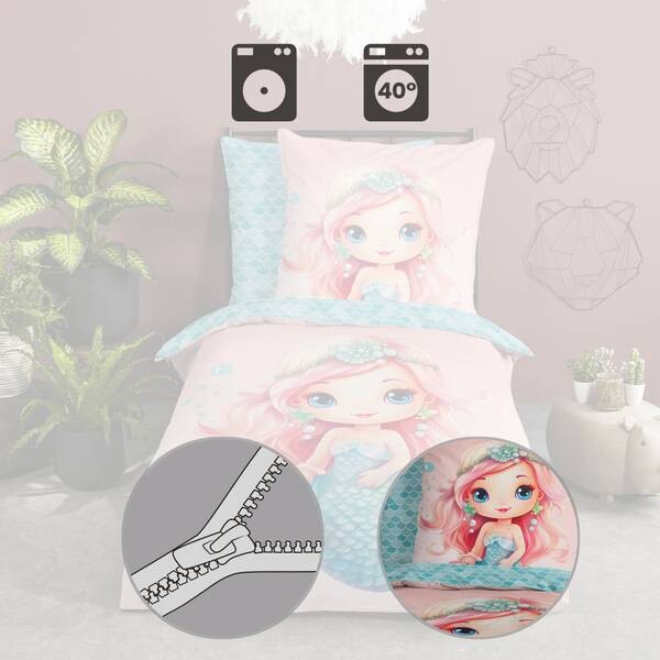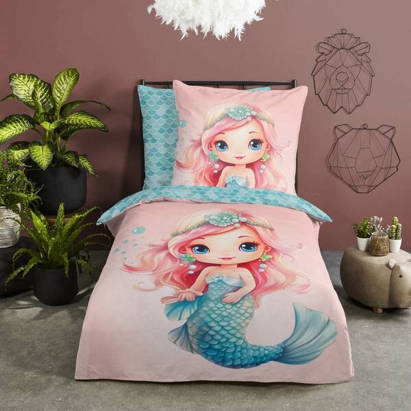 Доброе утро Renforcee детское двустороннее постельное белье "Alisse". Любовно нарисованная русалка заставляет сердца биться быстрее. На спине нанесен узор из рыбьей чешуи, который позволяет создавать красивые комбинации. Цвета особенно выразительны на гладкой ткани. Он впечатляет своей приятной мягкостью и приятным ощущением на коже. Дышащий, прочный и регулирующий температуру. Легко передвигать благодаря практичной застежке-молнии.