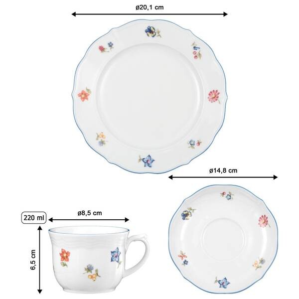 Комплект поставки: 6 тарелок для завтрака , 6 кофейных чашек, 6 кофейных блюдец