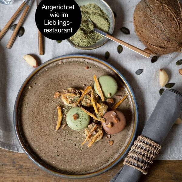 Особая техника обжига с использованием реактивной глазури придает столовой посуде Moritz & Moritz завораживающий вид. Это создает эффектные цветовые градиенты, которые всегда разные и характерны для этого типа обработки. Это означает, что каждая тарелка гарантированно будет уникальной и такой же уникальной, как и вы. Функциональная, эстетичная форма выглядит легкой и современной, в сочетании цветов бежевого и матового черного вы можете украсить свой обеденный стол для повседневного использования или на празднике. утром, на обед, на ужин и так далее на перекус между ними