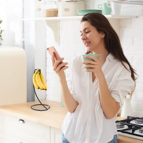Держатель для бананов идеально подходит для бережного хранения чувствительных фруктов. Благодаря подвесному хранению вкусные фрукты защищены от неприглядных точек давления, а также снижается риск образования плесени. Круглое основание с резиновыми ручками обеспечивает надежную подставку. Подвеска-банан также впечатляет своим изогнутым дизайном черного цвета, который привлекает внимание на кухне.