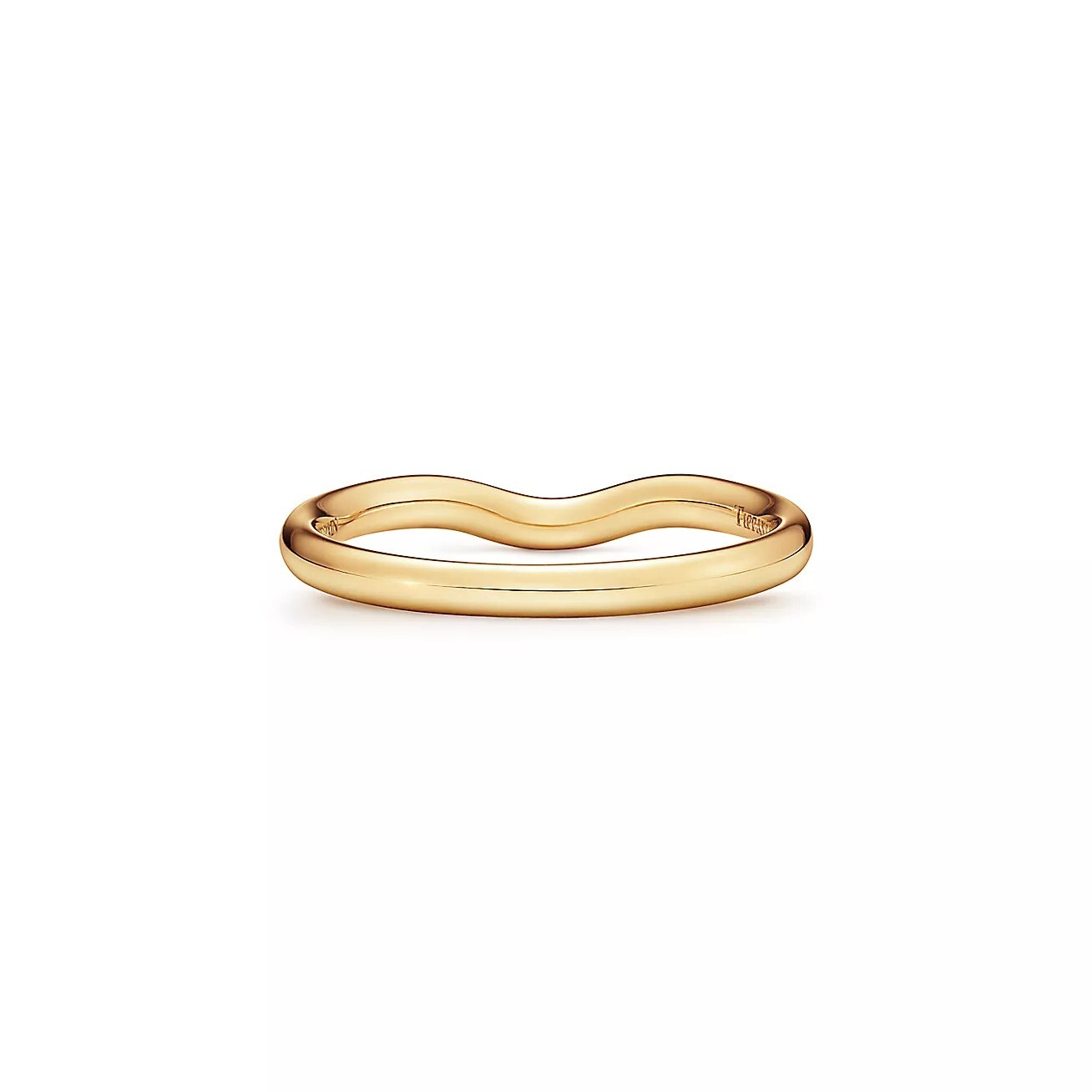Круглые бриллианты добавляют блеска скульптурной модели в неповторимом стиле Elsa Peretti. Изогнутое обручальное кольцо из 18-каратного золота с девятью бриллиантами.