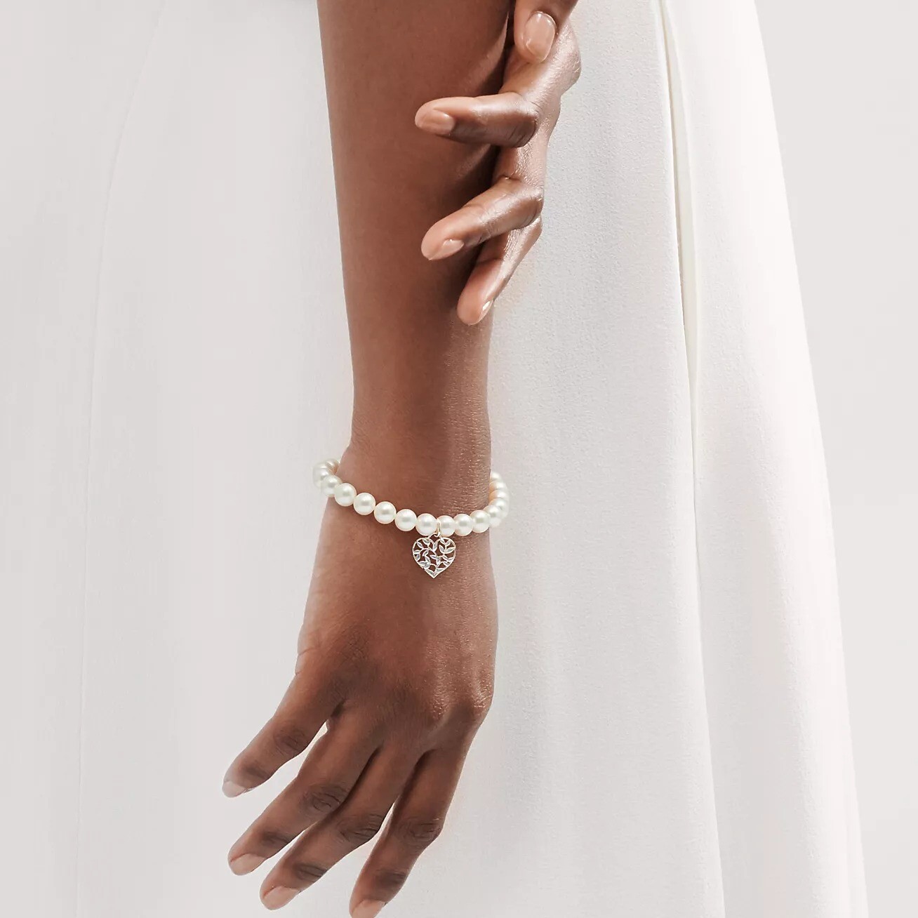 Это украшение - прекрасная дань уважения оливковой ветви, символу мира и изобилия. Браслет из стерлингового серебра с пресноводным культивированным жемчугом.