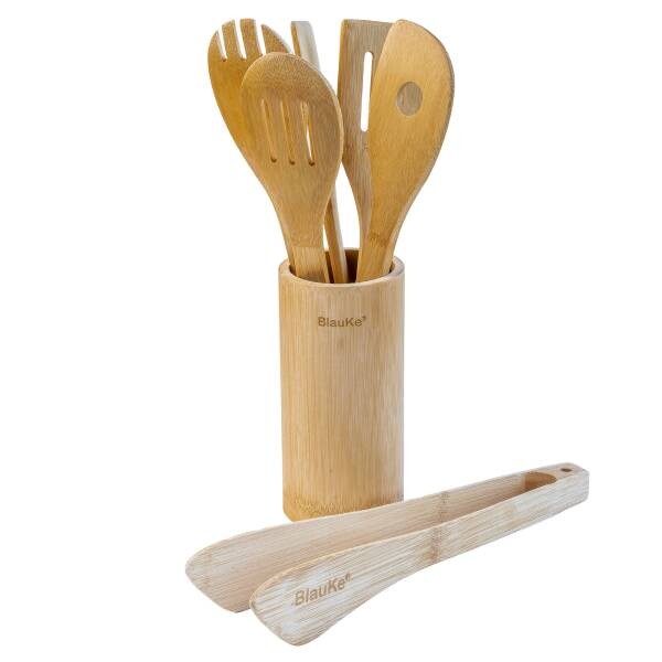 В комплекте: деревянная лопатка для приготовления пищи, с одним отверстием. ложка для смешивания, шумовка, поролоновая лопаточка, бамбуковая кулинарная ложка, ложка-вилка, бамбуковые щипцы для приготовления пищи, держатель кухонных принадлежностей