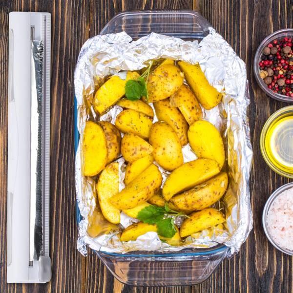 Практичный разделитель из фольги в наборе из 2 штук — идеальный помощник на кухне. Держатель фольги впечатляет простотой обращения. Вставьте алюминиевую или пищевую пленку в разделитель пленки, вытяните нужную длину и переместите серый ползунок в другую сторону. Затем пленка отделяется чисто и плавно. Благодаря диспенсеру для обрезки вам больше не придется беспокоиться о порванных или слипшихся пленках.