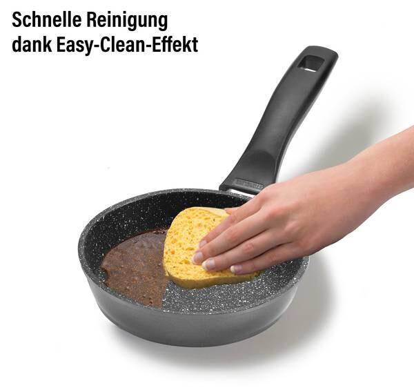На посуде с оригинальным покрытием STONELINE не остается стойких остатков, а простое мытье вручную экономит ваше время и силы.