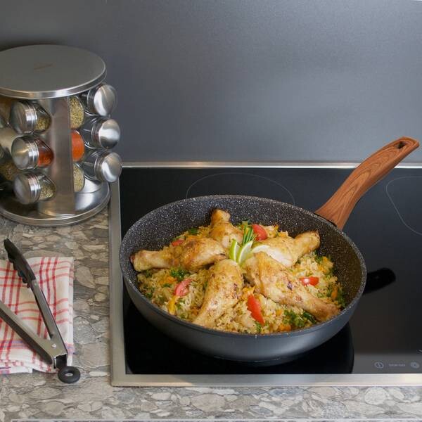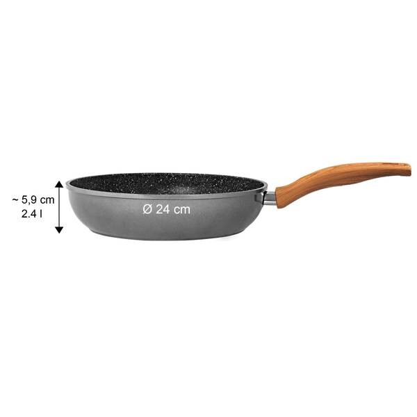 Готовьте и жарьте на здоровье, без жира! Дерево - это модный элемент стиля, который придаст любому кухонному интерьеру теплый акцент и создаст успокаивающую, уравновешенную атмосферу. Линия Back to Nature от STONELINE сочетает в себе эти свойства. Изделия в стильном деревянном исполнении гармонично привлекают внимание даже на столе. Эта сковорода с очень высоким бортом идеально подходит для всех блюд, предназначенных для жарки и тушения. Благодаря специальному антипригарному покрытию STONELINE ваши блюда могут быть легко приготовлены. взять с собой - в зависимости от ваших пожеланий или приготовить без жира и масла для жарки и снять с посуды, не прилипая. Неважно, готовите ли вы на стеклокерамике, индукции, электричестве или газе.