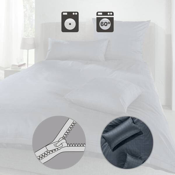 Дамасское постельное белье Erwin Müller Mako «Пассау». Тканая клетчатая структура элегантно переливается и подчеркивает элегантный характер. Наслаждайтесь прекрасными условиями для сна в гладкой, мягкой ткани с тонкой нитью. Он легкий, регулирует температуру и сияет постоянным мерцанием. Легко надевается благодаря практичной фирменной молнии. Изготовлено из тончайшей чесаной и мерсеризованной пряжи.