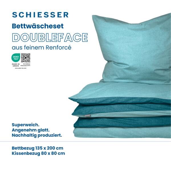 Двусторонний комплект постельного белья renforce doubleface Schiesser, бирюзовый