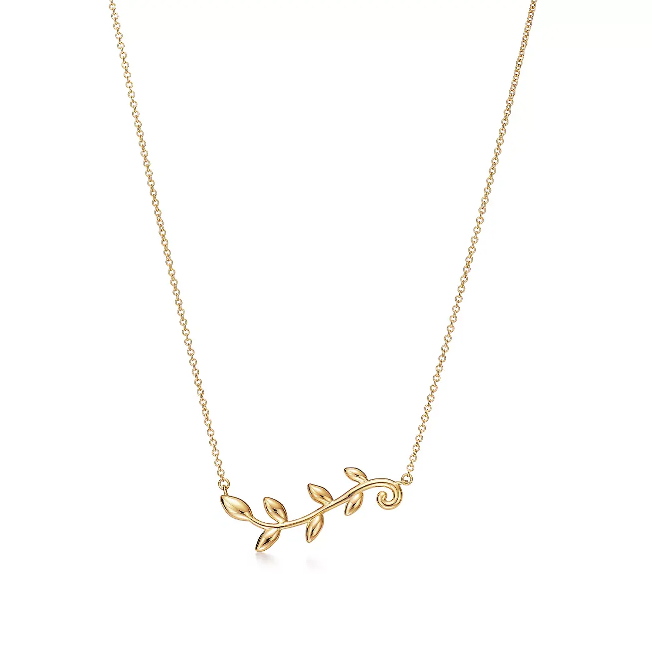 Это колье из 18-каратного золота от Tiffany & Co. x Paloma Picasso - напоминание об оливковой ветви, символе мира и изобилия.